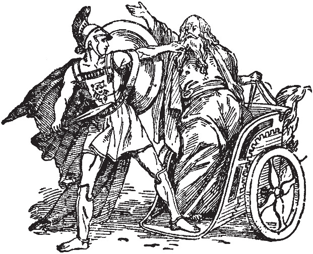 “Ho, there, thou madman!” they shouted. “Stand by and let the chariot pass.”